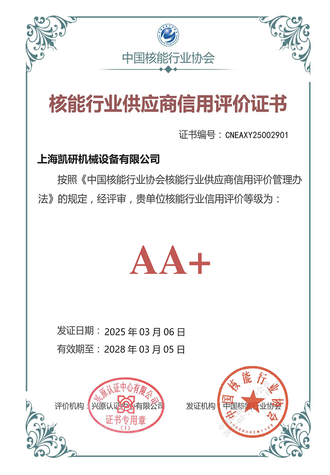 AA+核能行業(yè)供應(yīng)商信用評(píng)價(jià)證書
